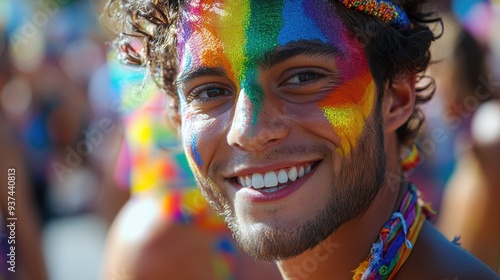 pride, performer, rainbow, face, paint, vibrant, passionate, engagement, audience, connection, diversity, inclusion, celebration, event, colourful, empowerment, entertainment, expression, happiness, identity, performance, art, activism, community, love, equality, support