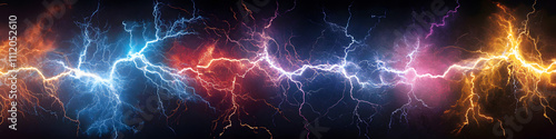 Vibrant Lightning Bolt Horizontal Composition in Blue, Purple, and Orange