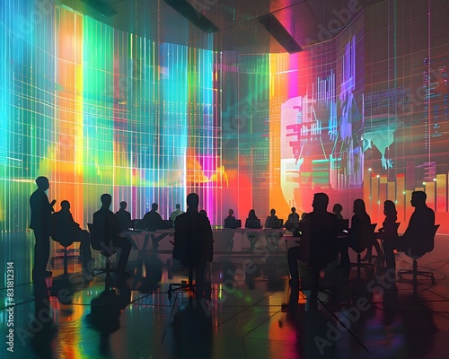 marketing, meeting, holographic, chart, datum, projection, vibrant, surreal, dream, image, business, technology, driven, innovation, communication, briefing, presentation, graphic, visualisation, office, strategy, success, growth, future, modern