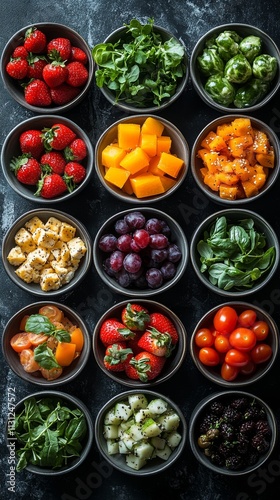 vibrant meals, infographics, and motivational overlays