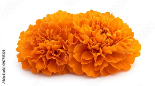 Vibrant Mexican cempasuchil flower in full bloom, deep orange petals with intricate texture, isolated on a bright white background, detailed and vivid