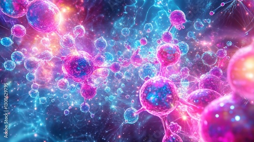 molecular, atom, bond, science, chemistry, physics, cosmic, universe, space, background, vibrant, colourful, energy, particle, structure, network, connection, abstract, art, design, illustration, digital, rendering, three-dimensional, model, glow, light, bright, pink, blue, purple, nebula, galaxy, star, glistering, sparkle, microscopic, technology, research, scientific, discovery, innovation, exploration, fantasy, surreal, aesthetic, beauty, nature