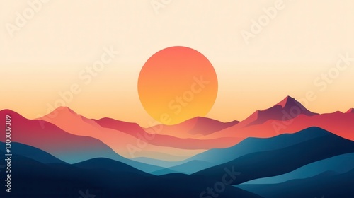 mountain, peak, light, sky, terrain, colours, sunrise, landscape, horizon, nature, scenery, vibrant, clear, bright, atmospheric, rocky, illuminating, beautiful, warm, tranquil, skyward, gradient, peaceful, artistic, serene, visual, morning, dawn, graphic, design, panoramic, view, daylight, distant, soft, hue, sunlight, illustration, flat, depth, silhouette, elevation, calm