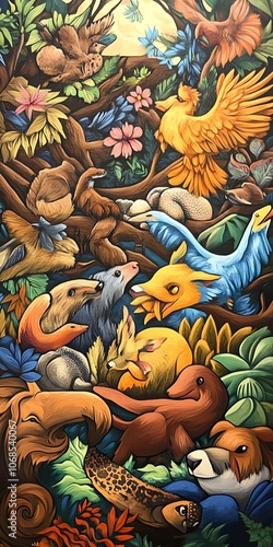wallpainting, wildlife, education, vibrant, depict, learn, nature, bold, colours, spray, paint, participation, exploration, pattern, urban, beauty, life events, sustainability, storytelling, creativity, impact, emphasize, collaboration, technique, concept, exhibition, message, installation, representation, transformation, artwork, interaction, cycle, community, craftsmanship, expression, intricate, contemporary, lively, passion, environment, conservation, visual, public, ecology, illustration, expressionism, project, inspiration