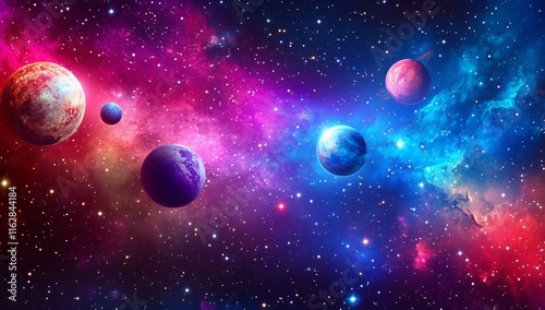 Vibrant Nebula with Planets: Cosmic Space Scene