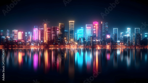 city landscape, night, light, neon, colourful, building, water, horizon, urban, illuminated, glowing, vibrant, modern, architecture, digital, art, graphic, design, illustration, view, landscape, city, illumination, urban scene, neon light, night view, graphic design, digital artwork, pixelated