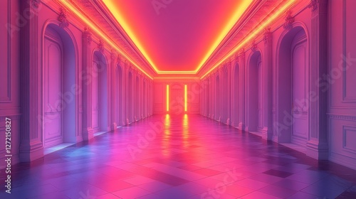Vibrant Neon Corridor with Colorful Lighting and Elegant Architecture