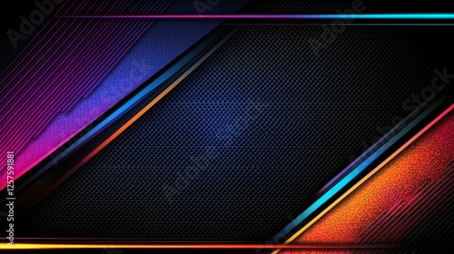 Vibrant neon fiber optic cables zip along, generating abstract patterns with multicolored lights on a dark background, producing an electrifying visual effect