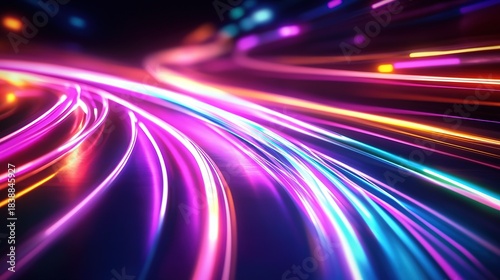 Vibrant neon light streaks on dark background, dynamic futuristic visual effects, otherworldly colorful glow, energetic vibe, perfect for video walls and digital backgrounds of vibrant creative projec