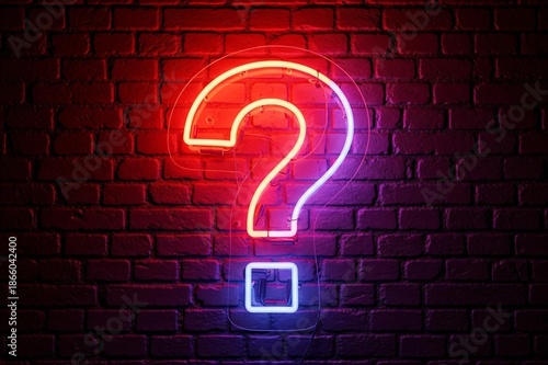 neon, question, mark, signs, brick, wall, red, blue, light, vibrant, glowing, symbol, query, doubt, researching, curiosity, puzzle, problem, solution, thinking, idea, concept, abstract, urban, decor, design, modern, trendy, creative, expression, communication, information, puzzled, uncertain, neon sign, brick wall, dark background, mysterious, intriguing, thought provoking, intellectual
