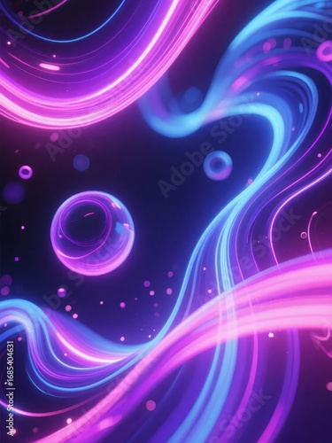 Vibrant Neon Swirls and Spheres in a Dark Space