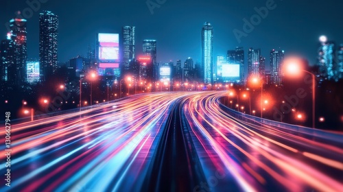 night, city landscape, light, trail, highway, vibrant, urban, skyline, traffic, light, speed, motion, skyscraper, building, illumination, neon, city, futuristic, road, travel, architecture, evening, glow, metropolis, fast, car, transportation, landscape, colourful, artwork, journey, downtown, infrastructure, horizon, dusk, electricity, design, tied-up, atmosphere, blue, pink, contrast, perspective, energy
