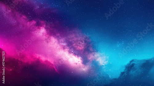 vibrant night sky showcasing stunning blend of pink and blue hues, filled with twinkling stars and cosmic clouds, creating mesmerizing celestial scene