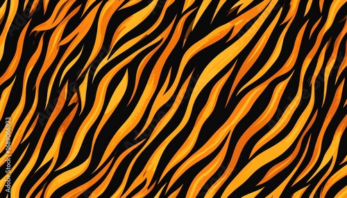 wild animal, exotic, jungle, safari, nature, wildlife, felino, abstract, background, pattern, seamless, texture, graphic, modern, bold, vibrant, dynamic, fashion, stylish, trendy, aesthetic, decorative, wrapping paper, fabric, textile, wallpaper, cover, poster, banner, vector, illustration, digital artwork, design element, blank, copy space, orange, black, high-quality, hi-res, detailed, full frame, closeup, horizontal