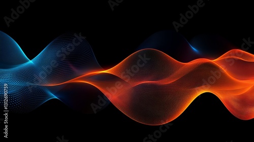 vibrant orange and blue abstract design with layered waveforms and glowing highlights, dynamic and futuristic, artistic and modern composition