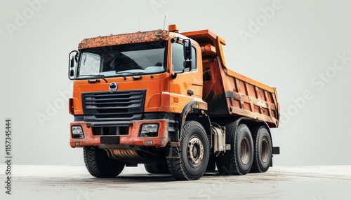 Vibrant Orange Dump Truck on Clean Background with Sol and Tones for Quality Visuals