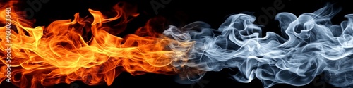Vibrant orange flames blend with swirling white smoke, creating a captivating contrast against a dark background