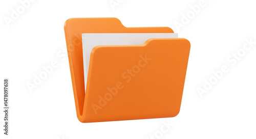 Vibrant orange folder icon clean design holds a white paper 3D rendering simple modern