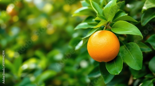 Vibrant orange fruit, Lush green leaves, Citrus tree, Bokeh background