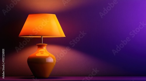 Vibrant Orange Lamp Against Textured Purple Wall Background