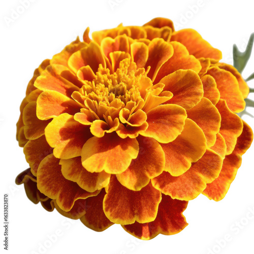Vibrant orange marigold flower isolated on transparent background