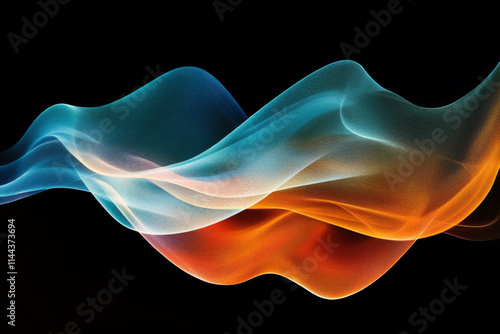Vibrant orange teal white psychedelic grainy gradient color flow wave on black background, music cover dance party poster design
