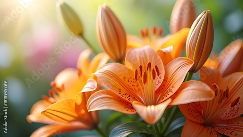 Vibrant Orange Tiger Lilies Blooming with Gentle Sunlight in a Garden