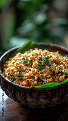 Vibrant pad thai nestled in banana leaf a tasty thai delight