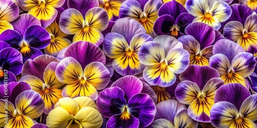 Vibrant Pansy Flowers in Purple and Yellow Pattern for Stunning Food Photography, Capturing Nature's Beauty and Colorful Textures for Culinary Inspiration and Floral Decor Ideas