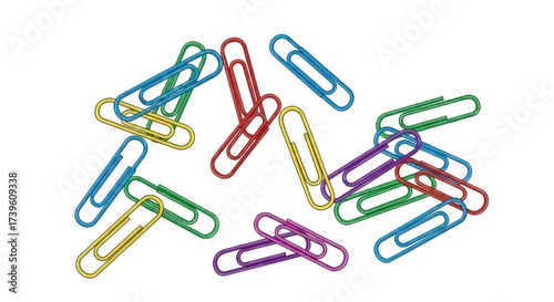 Vibrant Paper Clips Scattered on White Background Illustrating Organization and Stationery