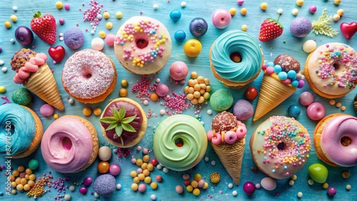 vibrant, pastel, candy, sprinkle, flow, glazed, donut, ice, cream, muffin, whimsical, border, colourful, sweet, treat, festive, holiday, decorative, goodie, dessert, fun, playful, sugar, rush, party, celebration, celebratory, joyful, happy, bright, bold