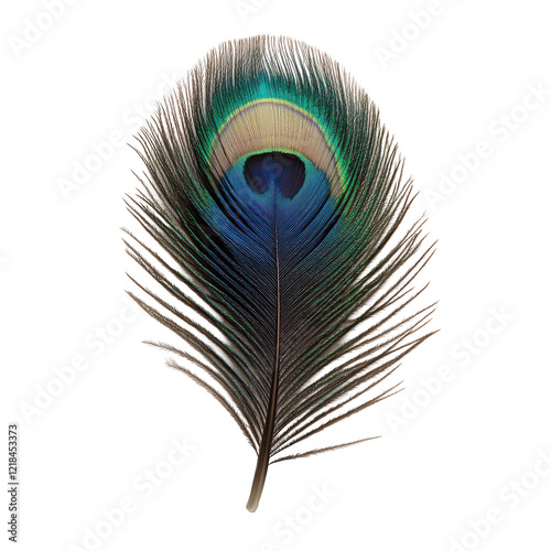 Vibrant Peacock Feather Isolated on Black Background,