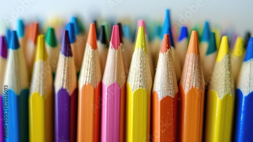 Vibrant pencils for classroom art education with kids colorful stationary on white backdrop promoting unity and diversity