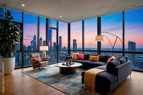 Vibrant Photography Template for a Modern Living Area with Skyline View