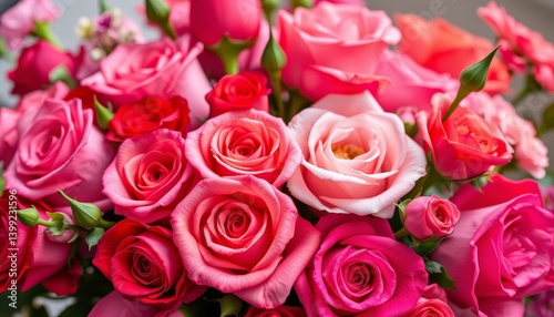 Vibrant pink & red rose bouquet, colorful romantic floral arrangement , flowers, floral design
