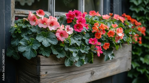 Vibrant Pink Petunias in a Window Box on a Sunny Day