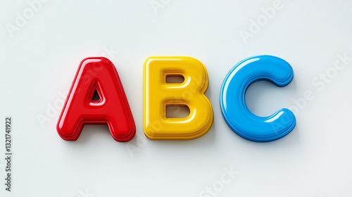 Vibrant plastic letters ABC in primary colors, ideal for educational materials and childrens activities focusing on literacy