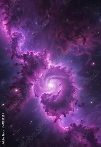 Vibrant purple nebula swirls, star cluster glows , bright, stars, light