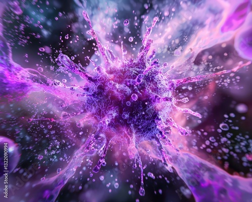 Vibrant Purple Splash with Abstract Microbial Structure Background