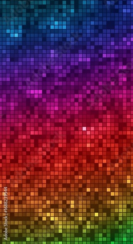 Vibrant Rainbow Pixelated Mosaic Background with Diagonal Color Shift abstract blue