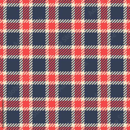 Vibrant red and navy plaid pattern, perfect for textile design, apparel, or website backgrounds. This seamless texture evokes feelings of warmth and comfort, ideal for autumn or winter themes.