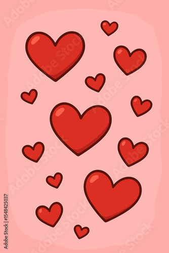 Vibrant Red Cartoon Hearts on Pink Background, Seamless Vector Pattern for Valentine’s Day, Love, Romance, Affection, Wedding, Anniversary, Greeting Card, Cute Romantic Celebration Design