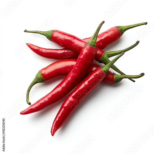 Vibrant Red Chili Peppers on White Background, A Spicy Still Life