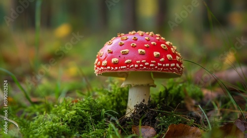 vibrant, red, fly, agaric, mushroom, forest, floor, green, nature, outdoors, fungal, cap, white, stalk, autumn, grass, moss, natural, environment, toadstool, timberland, detail, closeup, wild, typical, colourful, ecology, forested, ground, seasonal, micro, scene, flora, organic, growth, spore, ecosystem, background, biodiversity, fall, damp, landscape, picturesque, earthy, habitat, serene, unspoiled