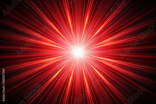 Vibrant red rays emanate from the center of a dark background, forming a dynamic, abstract pattern with soft,