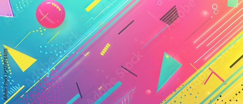Vibrant retro 80s and 90s inspired abstract background banner featuring a bold noisy gradient, neon hues, and playful Memphis-style shapes