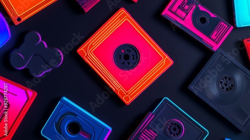 cassette, tape, music, vibrant, retro, arrange, artistically, dark, background, showcase, colourful, pattern, handcraft, playful, collection, design, concept, graphic, nostalgia, album, nostalgic, charme, classic, funky, display, modern, object, icon, playback, hipster, culture, vintage, essence, era, abstract, shadow, artwork, texture, detail