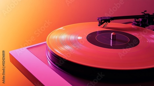 Vibrant retro turntable spinning a vinyl record under colorful lights, evoking nostalgia and the classic sound of analog music.