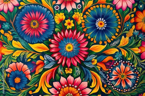 Vibrant Scandinavian Rosemaling Featuring Classic Floral Patterns