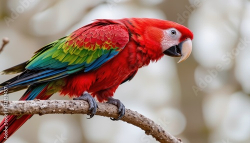 Vibrant scarlet macaw in natural habitat rainforest wildlife photography close-up nature conservation